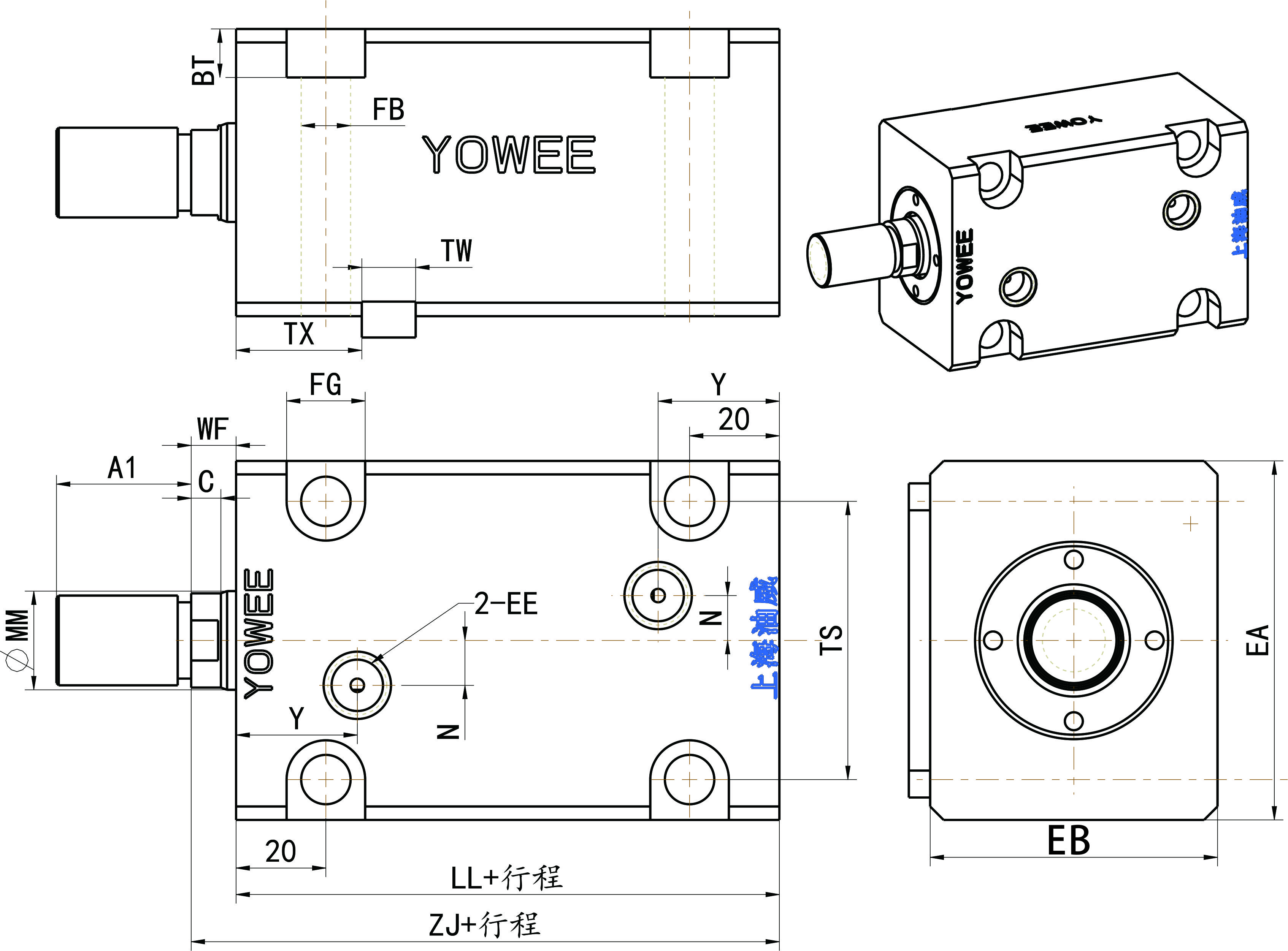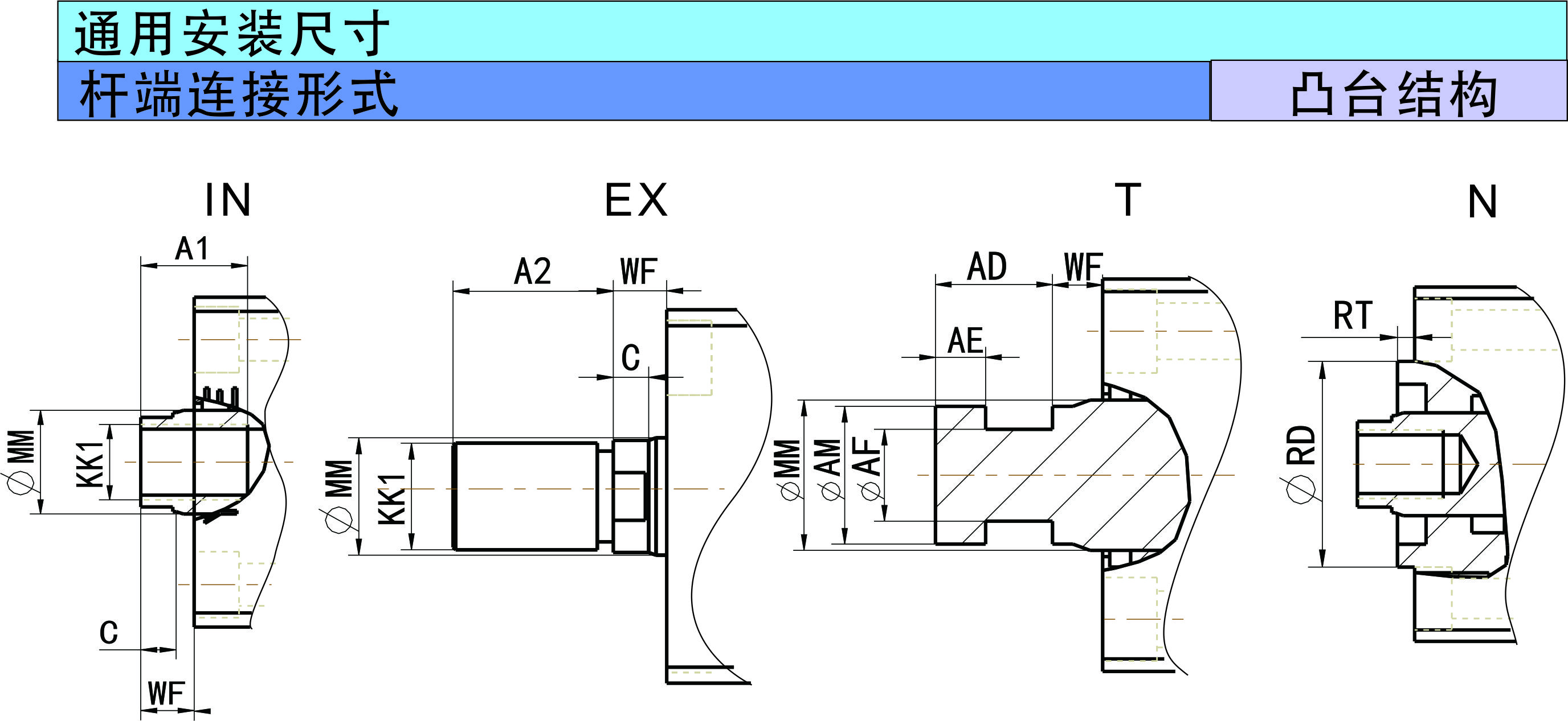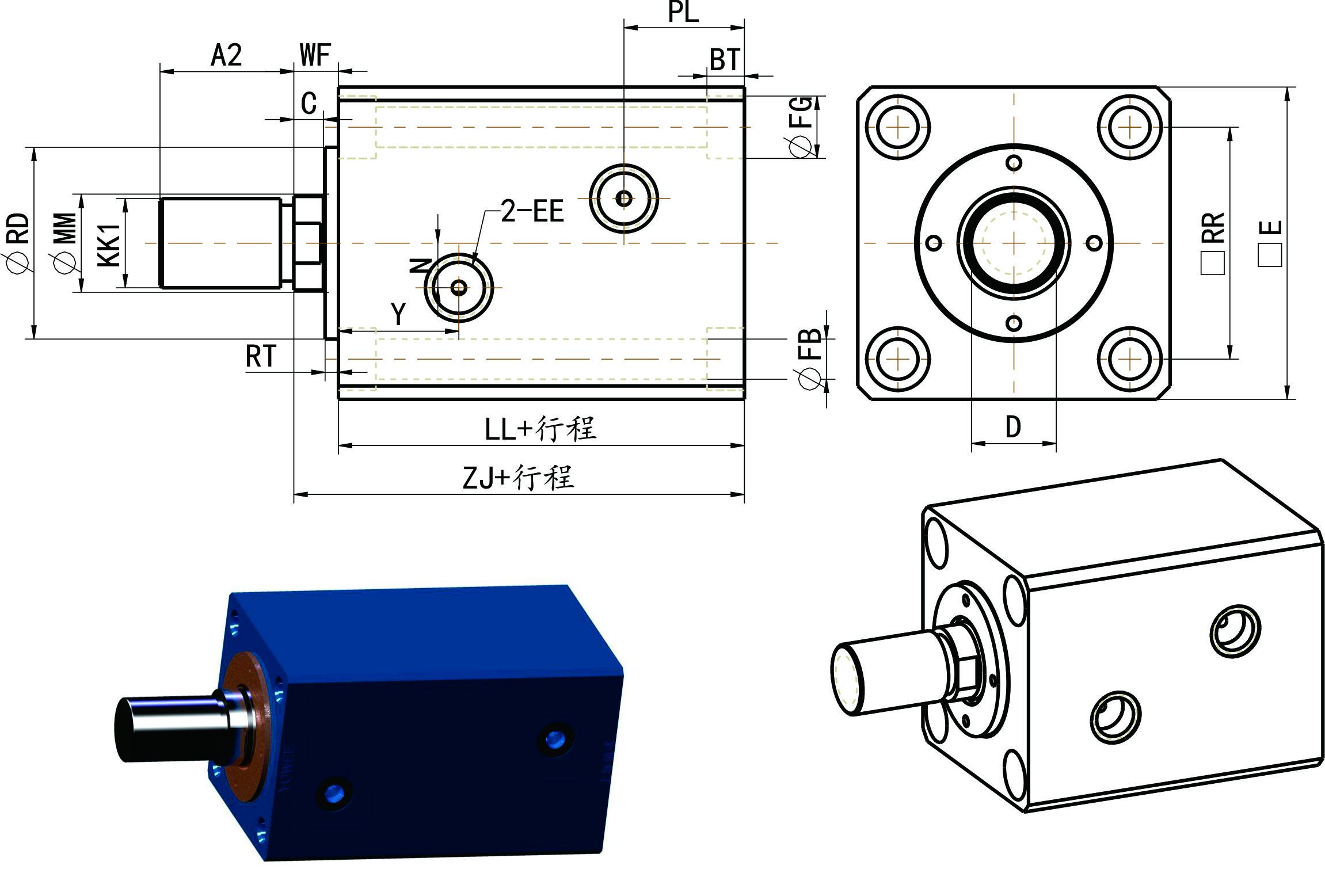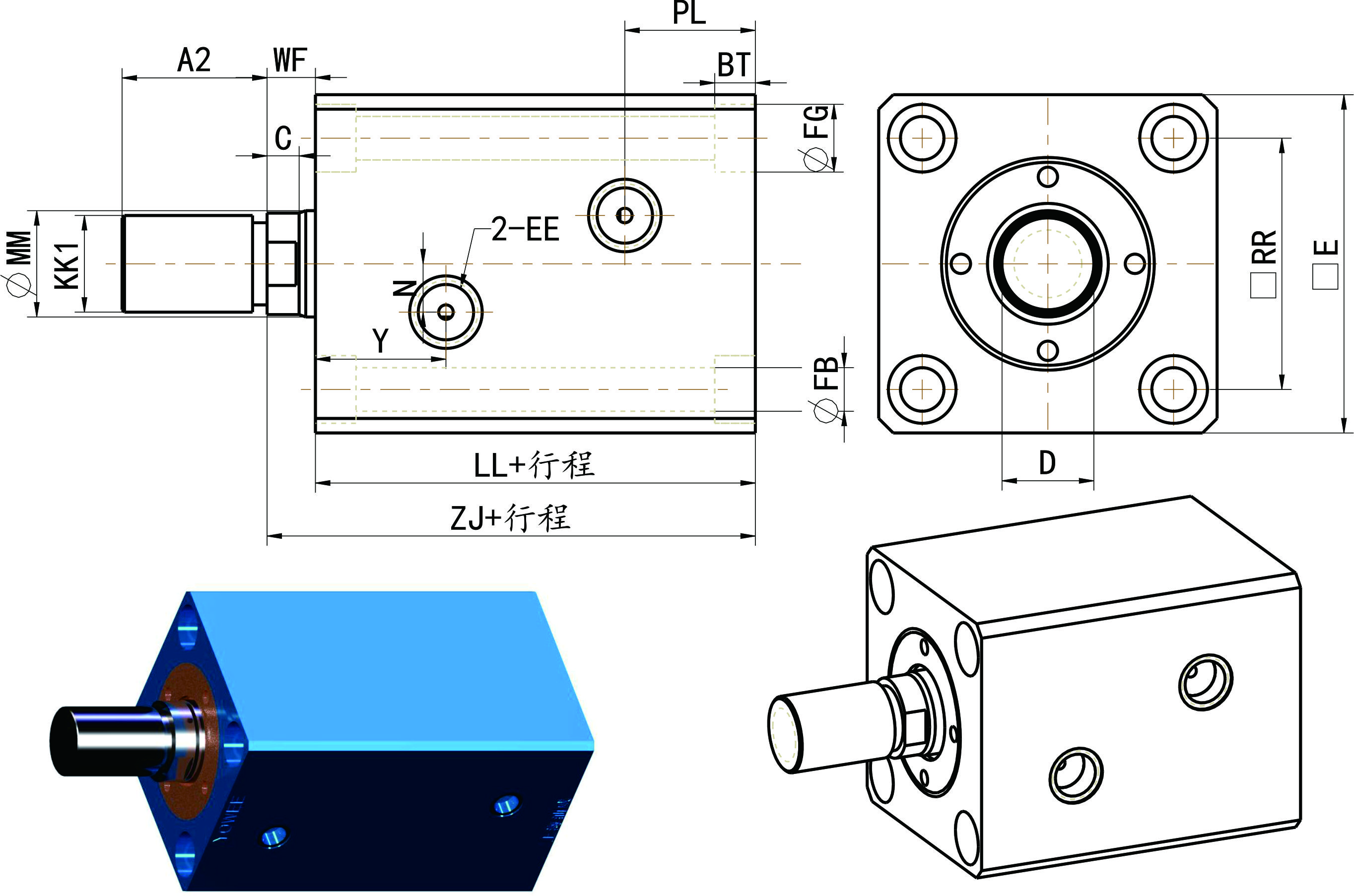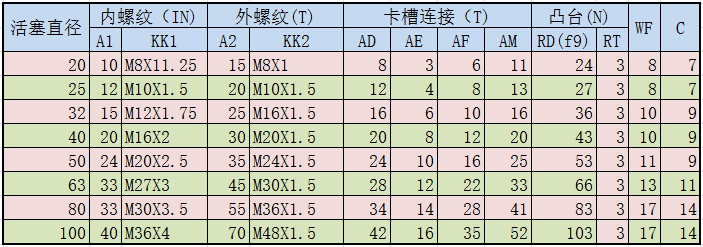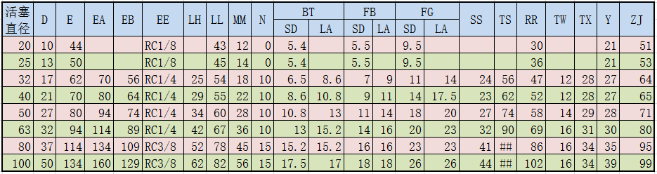 薄型油缸尺寸表-通用安裝尺寸