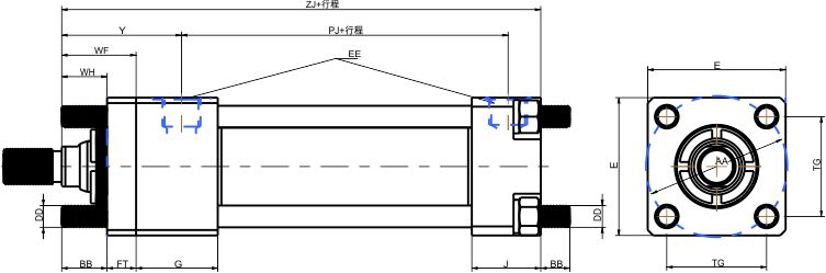 HMI/HMD重載拉桿油缸前后拉桿安裝方式 代號(hào):TD 符合標(biāo)準(zhǔn):ISO6020/2 同美國派克(PARKER)HMI系列拉桿油缸, 德國力士樂(REXROTH)CDT3系列油缸